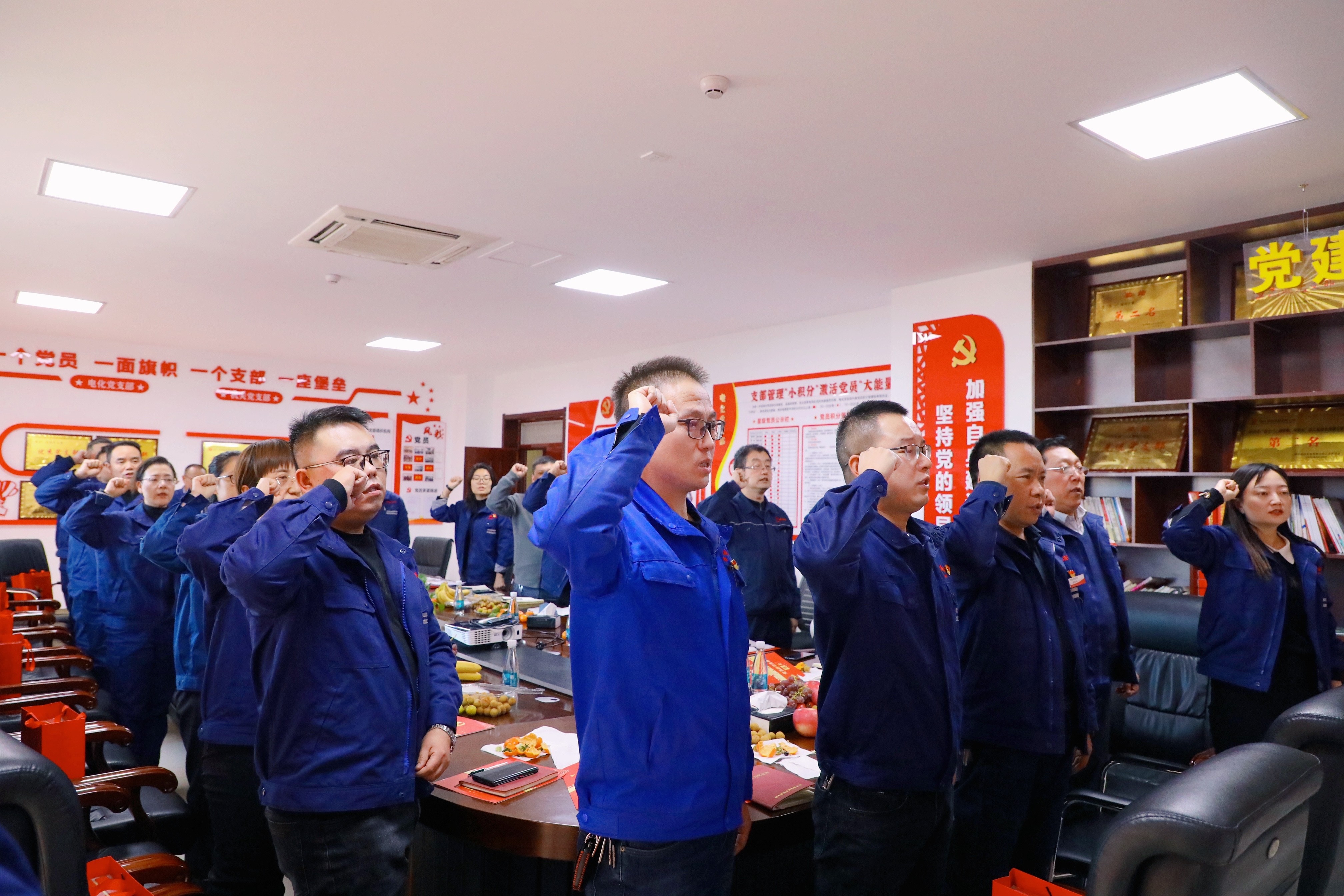 会上,支部委员张文韬同志组织大家学习习近平总书记重要讲话精神,大家聚精会神倾听,认真做着笔记。支部委员高愉同志将政治生日贺卡、政治生日纪念品发到每一位党员手中,并带领大家重温入党誓词。