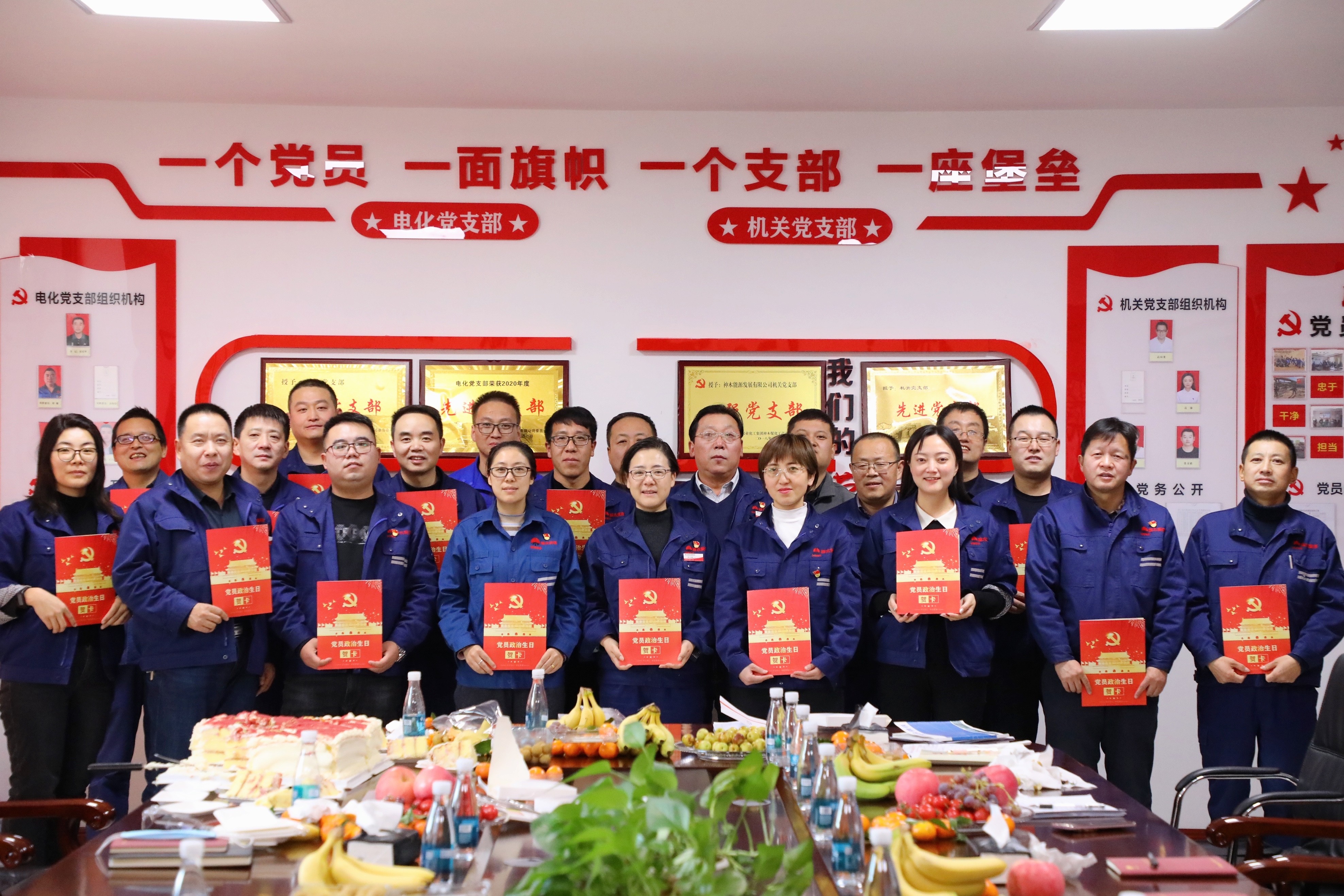 活动最后大家开心的分享着政治生日蛋糕,集体合影。