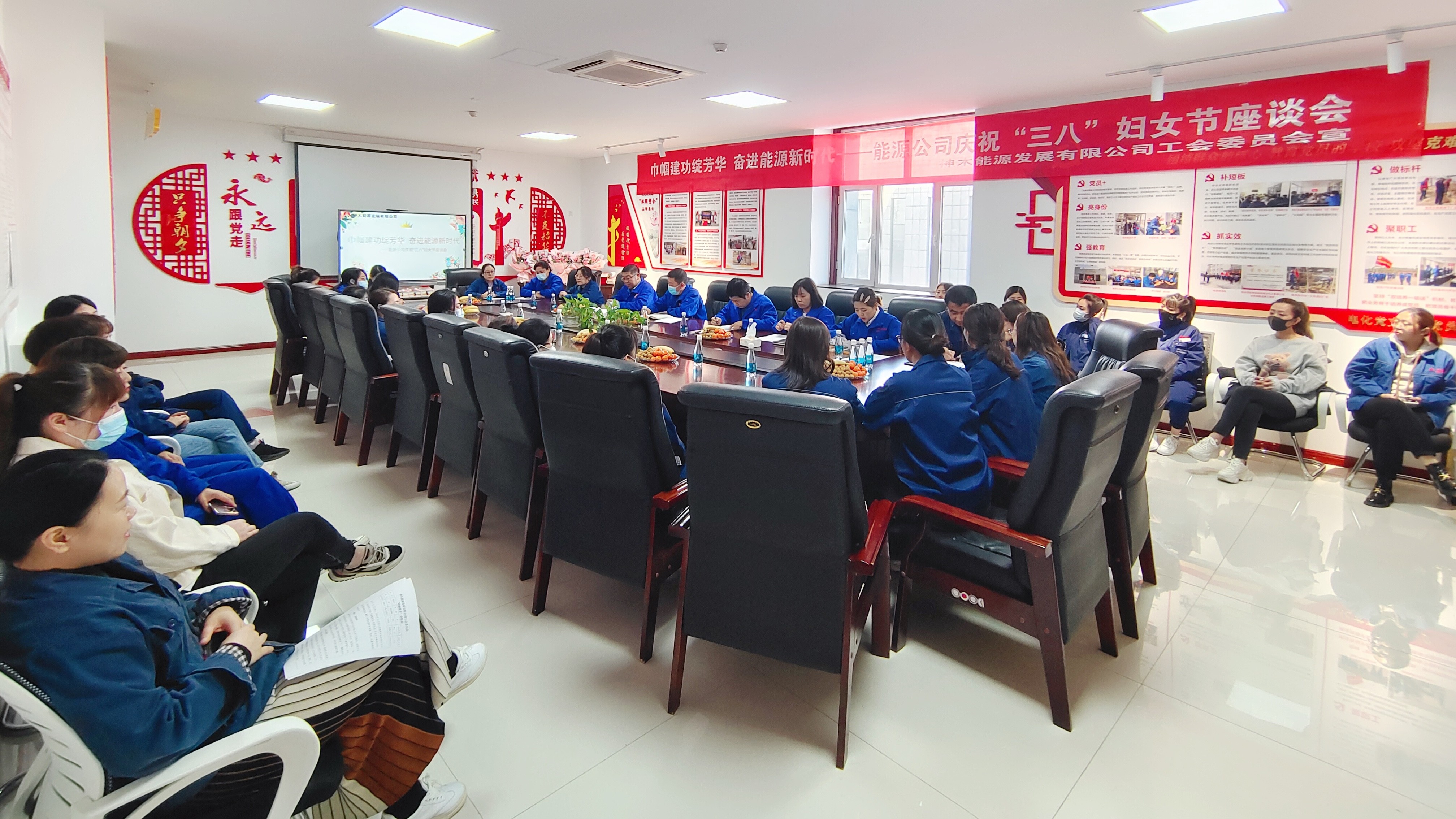 3月8日,能源公司在党员活动室举办“巾帼建功展芳华 奋进能源新时代”妇女节座谈会。