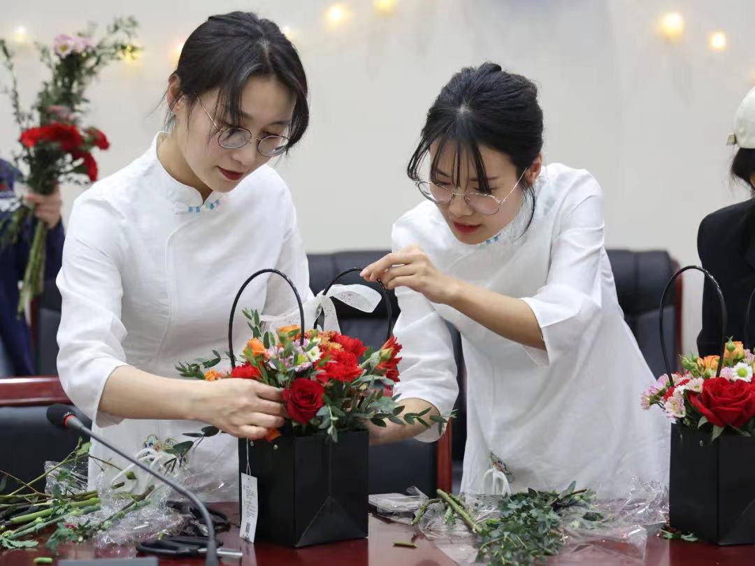 女神的节日怎么能少了鲜花?玫瑰、康乃馨、雏菊……铺满房间的幸福感,此刻,电化女工正沉浸其中,在花艺师的现场教学下,顺应植物的生长形态,用创意的修饰,展现出花草自然的美,插出一个个代表美好的花篮。这一刻,把工作、家庭暂时放在一边,只做自己,一起把生活过成诗。