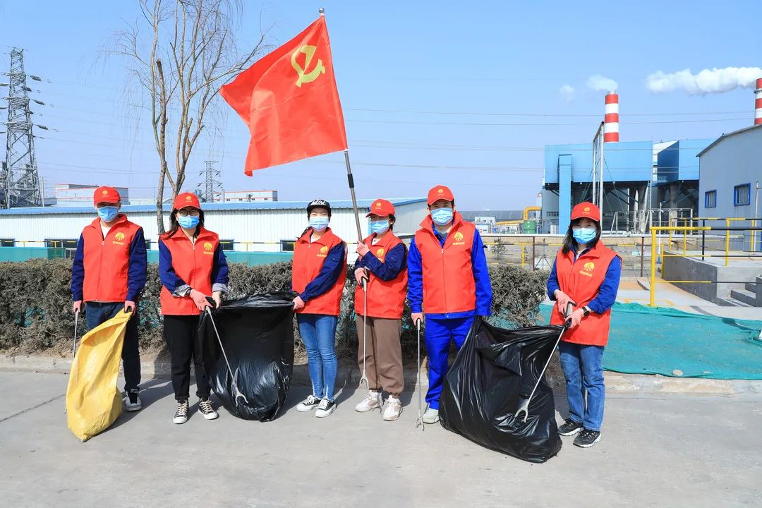 能源公司员干部、入党积极分子们穿戴好红色志愿者马甲,扛起党旗,拿上夹子等工具排着整齐的队伍前往环境清理区、主干道两侧。大家按照事先分配好的责任区域开始忙活起来。劳动中,捡垃圾、铲杂草,大家穿梭忙碌的身影形成了能源公司春日里一道亮丽的风景线。经过1个多小时的劳动,放眼望去,能源公司大门外主干道容貌焕然一新,处处展现着“绿色能源”新景象。
