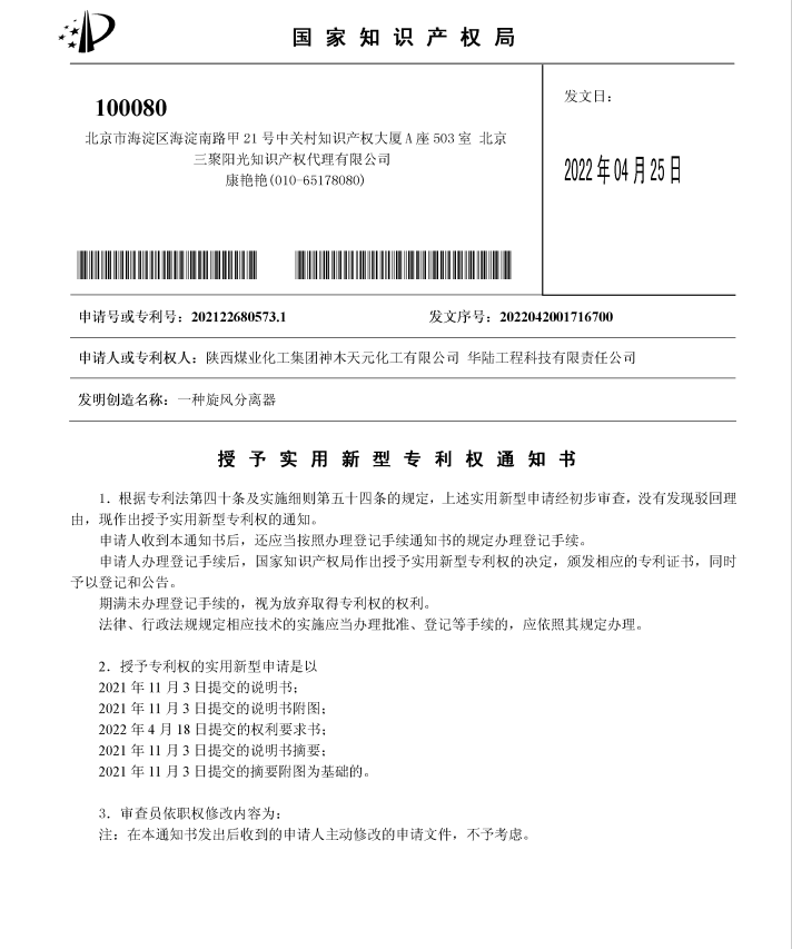 一直以来,天元公司大力推动科技创新成果转化,注重专利技术的形成和保护,持续抢占自主知识产权高地,知识产权实力显著提升,为企业高质量发展提供了不竭的创新动力。截至目前,天元公司累计申请专利145件,获得授权专利106件,其中发明专利37件。(刘超 郝祥利)